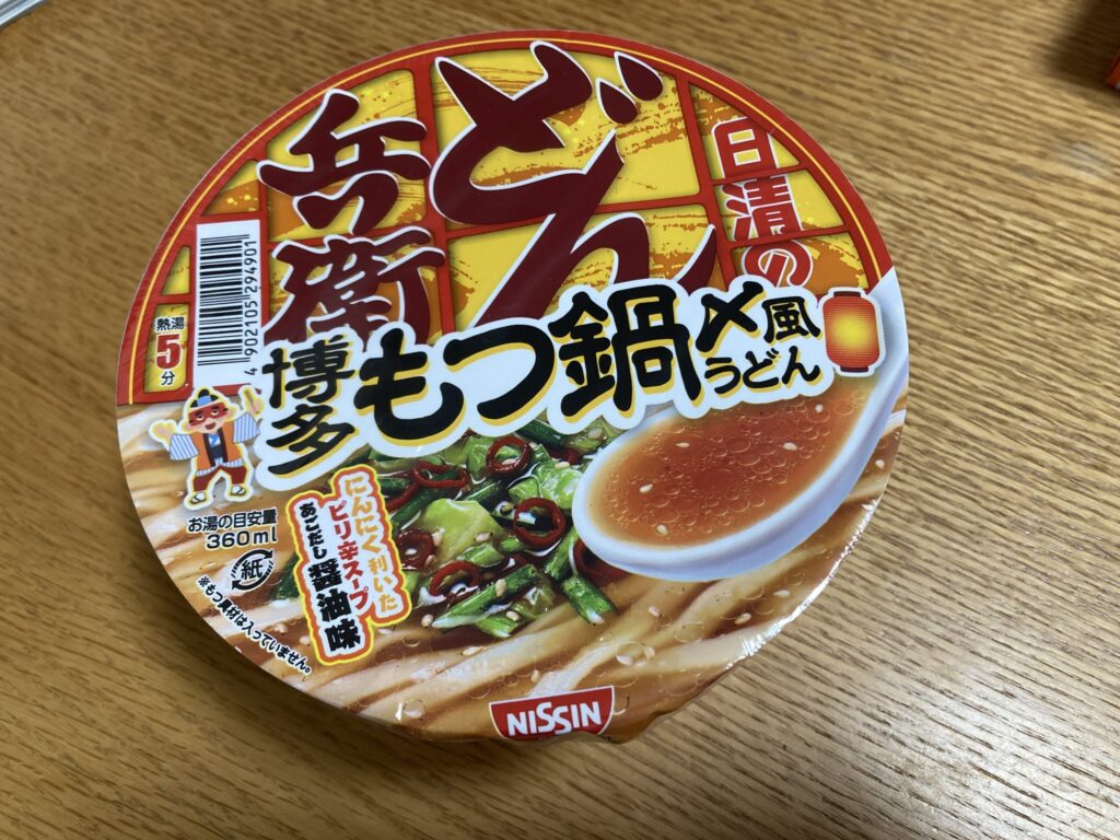 日清食品の「どん兵衛博多もつ鍋〆風うどん」。